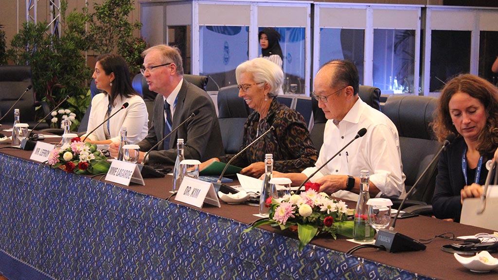 On Friday, 12 October the Plenary Session of the Annual Meetings held at BNDCC’s Nusa Dua Hall and officially opened by the President of the Republic of Indonesia H.E. Joko Widodo, and attended by Managing Director of IMF Christine Lagarde, President of World Bank Dr. Jim Yong Kim, 5 ASEAN Head of States, Chair the IMF Board of Governors Petteri Orpo, Governors of Central Banks, Ministers, Ambassadors and Senior Officials, IMF and World Bank Group officials, and more than 3,500 delegates of IMF-WBG member countries.
