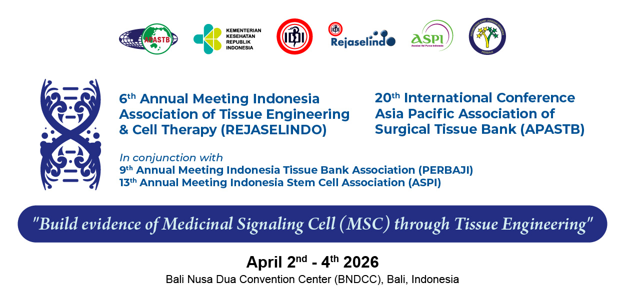 6th Scientific Meeting of Indonesia Association of Tissue Engineering and Cell Therapy (REJASELINDO), in conjunction with 20th Scientific Meeting Asia Pacific Association of Surgical Tissue Banking (APASTB), 13th Annual Meeting Indonesia Stem Cell Association (ASPI), 9th Meeting Indonesia Tissue Bank Association (PERBAJI)